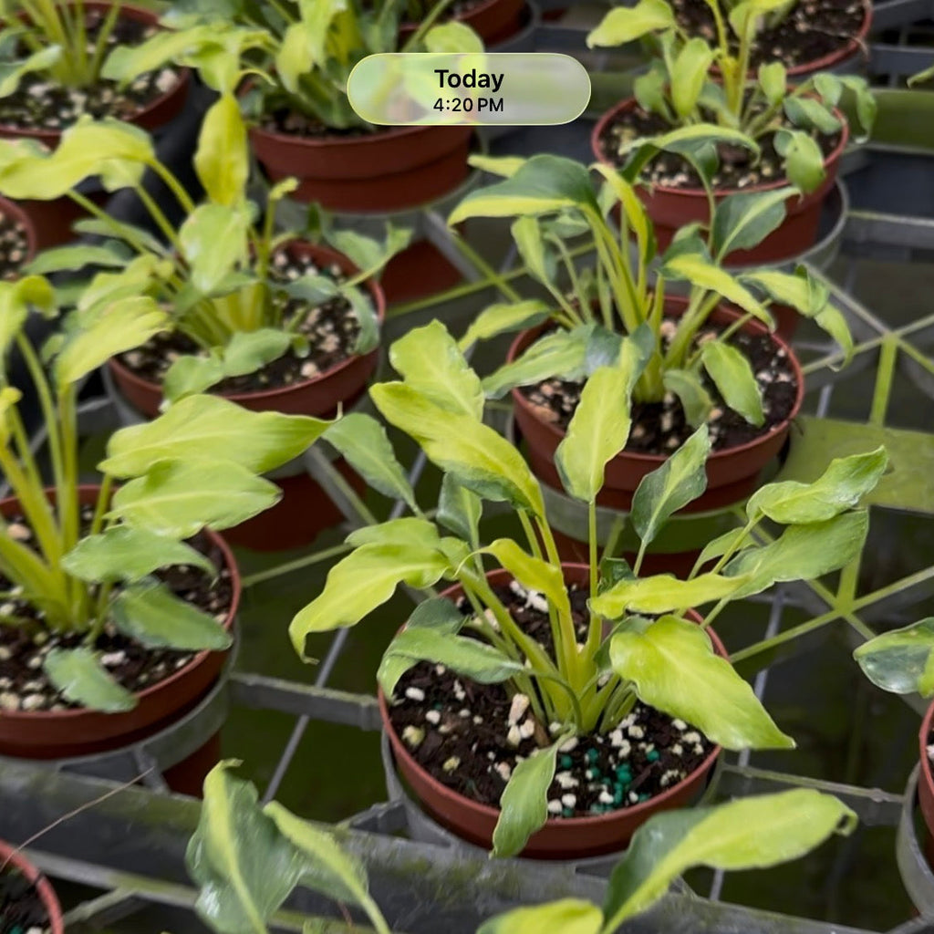 For best color and performance, grow in a bright, indirect light and allow soil to dry between watering. Plant in a well-draining, aroid potting substrate.