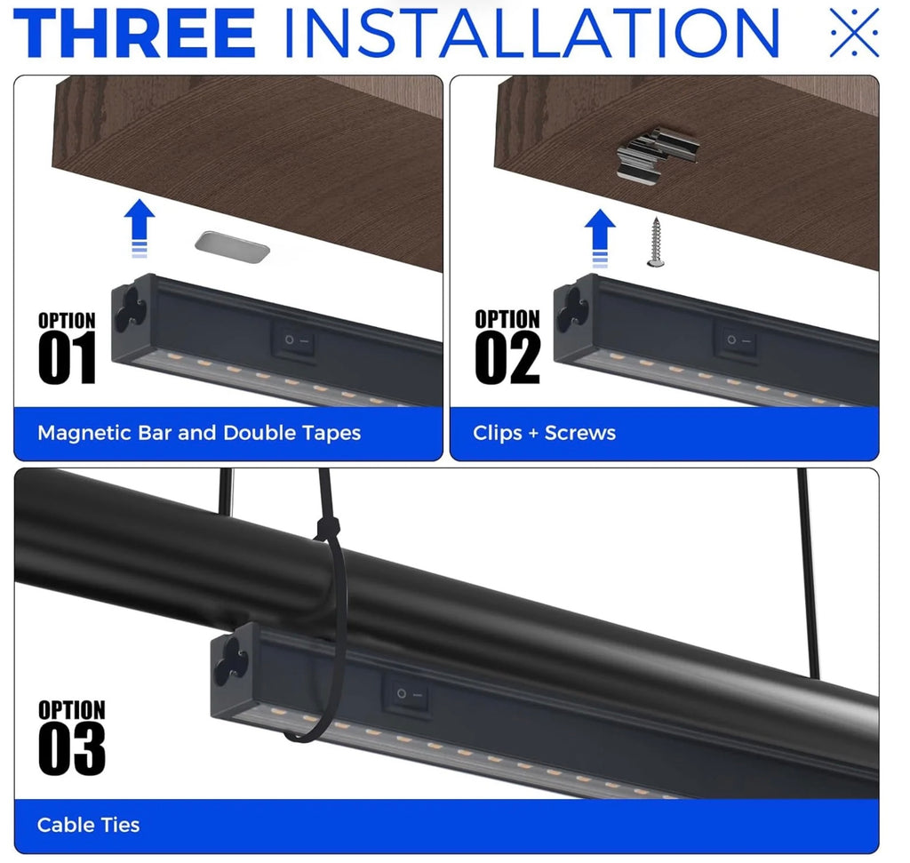 Each light strip comes with both a magnetic adhesive strip, light clips, ties, and double sided tape so you can install to any surface with ease and minimal set-up.