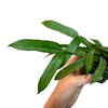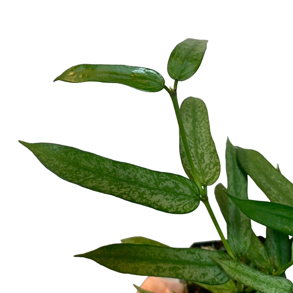 Hoya pandurata has thin, very narrow oblong leaves that have distinctive deep green veins. Their flowers are a creamy yellow. Their more petite growth habit makes them great as a climbing, trailing, shelf or hanging specimen!