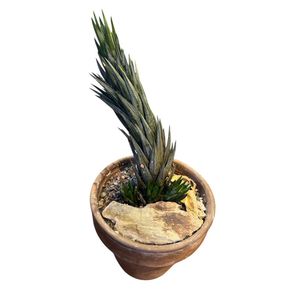 Haworthia glauca is an upright-growing haworthia with rigid steel grey, pointed leaves. Very interesting and collectible.