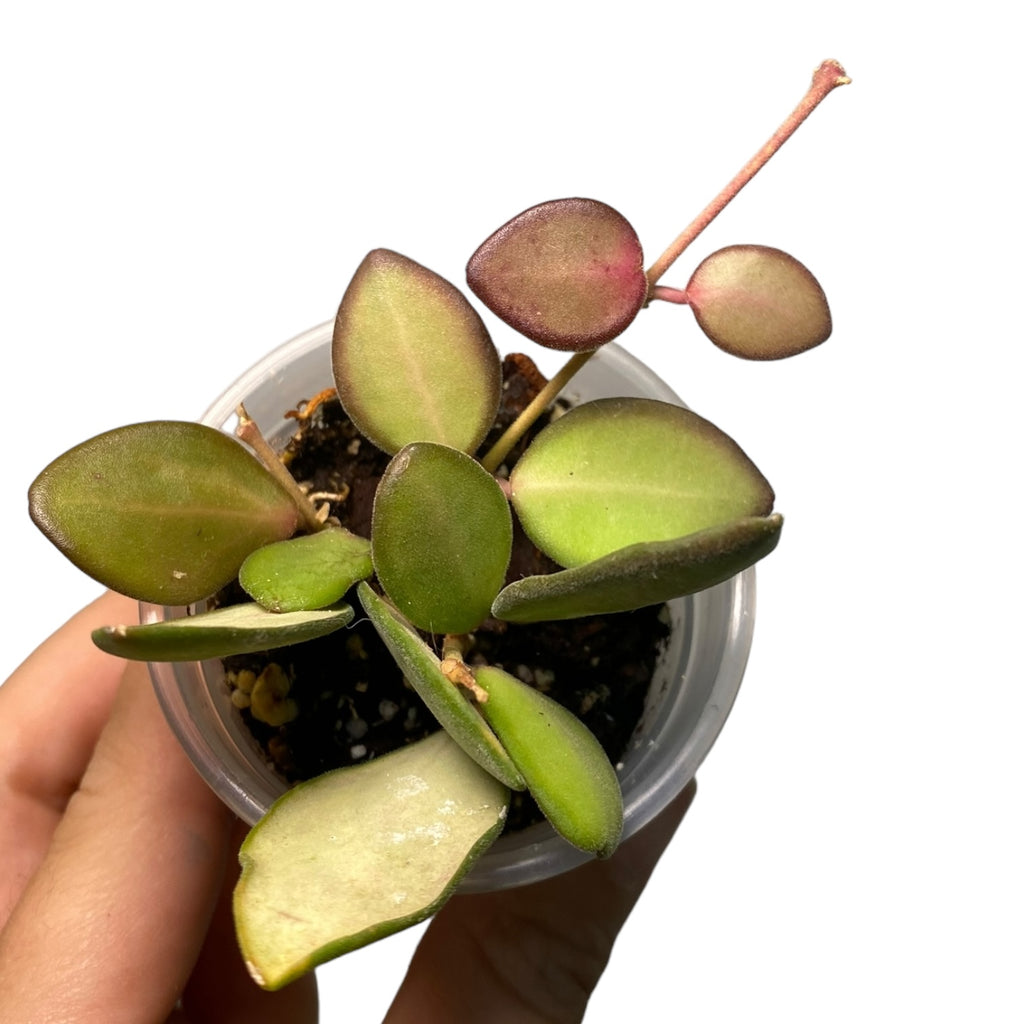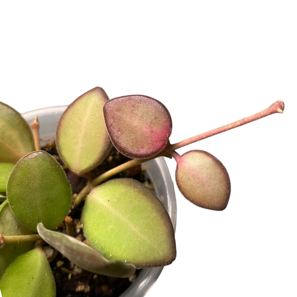 Hoya burtoniae have a soft, velvety appearance and texture with muted colors of red, greens, and blushing pinks.