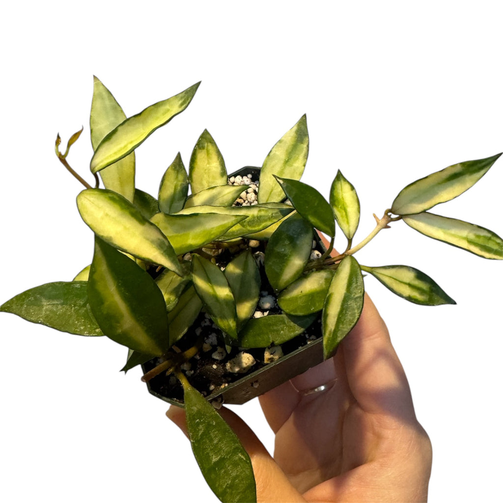 Hoya lacunosa Variegated is a more petite growing hoya with variegation patterns ranging in white, pink, creams, and yellows against deep green.