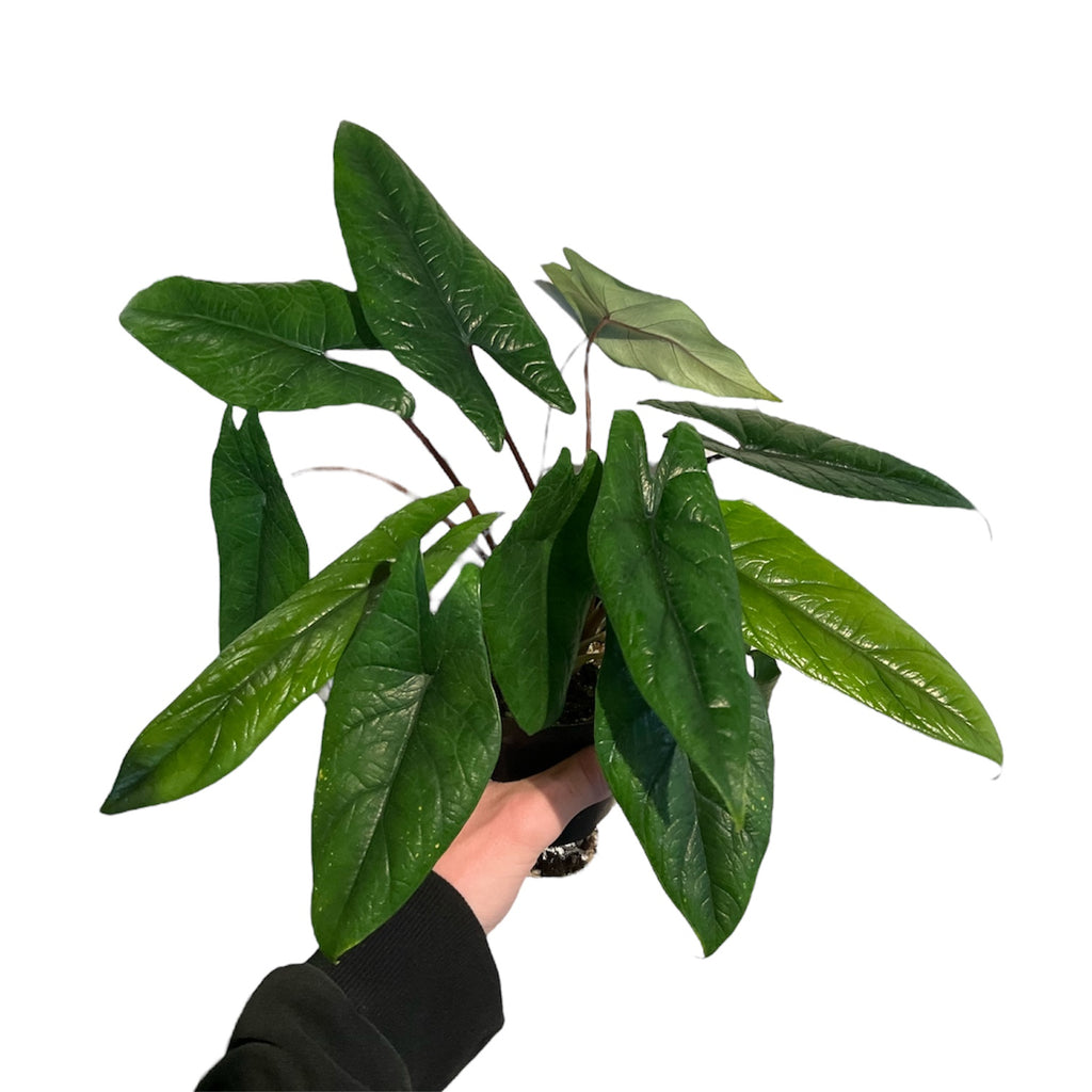 Alocasia scalprum is a smaller form alocasia with blue/green arrow-shaped leaves that have an almost metallic sheen to them.