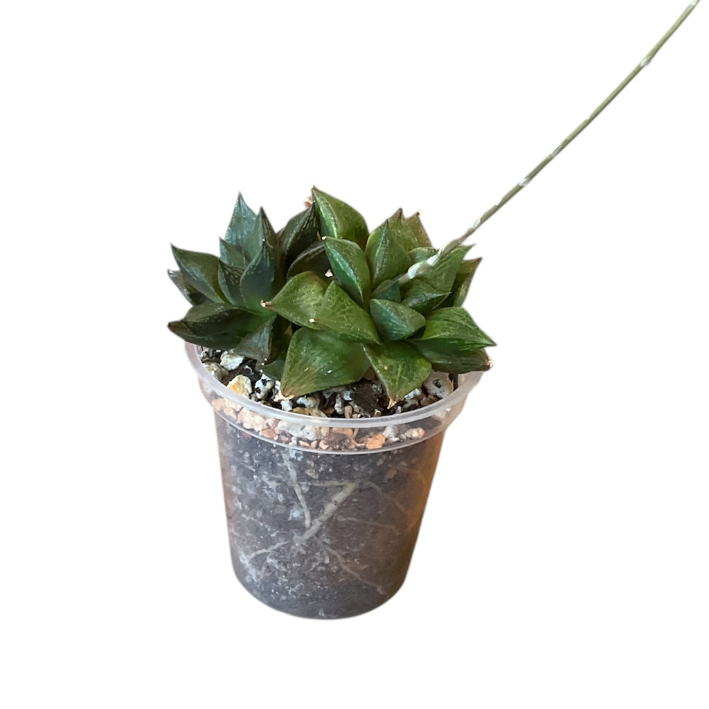 Haworthia prefer bright, indirect light. Eastern, Western, or Southern exposure is best. Water when soil is fully dry, and pot into a well draining cactus/succulent soil mix.