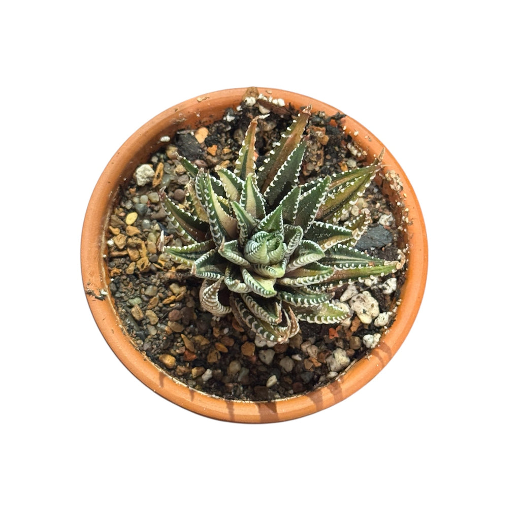 Haworthia prefer bright, indirect light. Eastern, Western, or Southern exposure is best. Water when soil is fully dry, and pot into a well draining cactus/succulent soil mix.