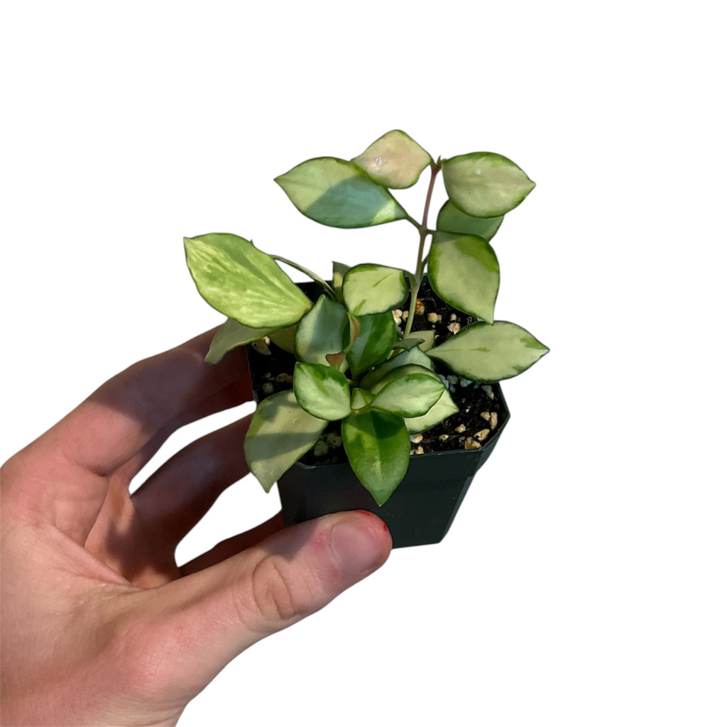 Hoya heusckheliana is hard to say, easy to love! Stunning variegation with colors ranging from cream, light green, to shades of pink and yellow. Their petite leaves and growth habit make them easy to add to any collection without taking up much space. Great as a trailing, shelf or hanging specimen too!