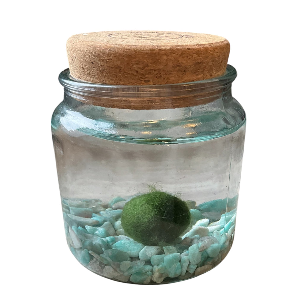 The Moss Amigo is an adorable pet plant that can bring a touch of nature to any room. This Large Marimo Moss Ball (aka 'Amigo') with Amazonite Stone is a perfect plant decoration for work or office and makes an ideal gift. Known as the 'gambler's stone,' Amazonite is associated with money, luck, and overall success, believed to encourage good fortune and prosperity. With its soothing effect on the nervous system, it promotes balance and calmness. As the birthstone for Virgo (August 23 – September 22) and beneficial for Scorpio, Aries, and Leo, this crystal brings positive energy to any space.