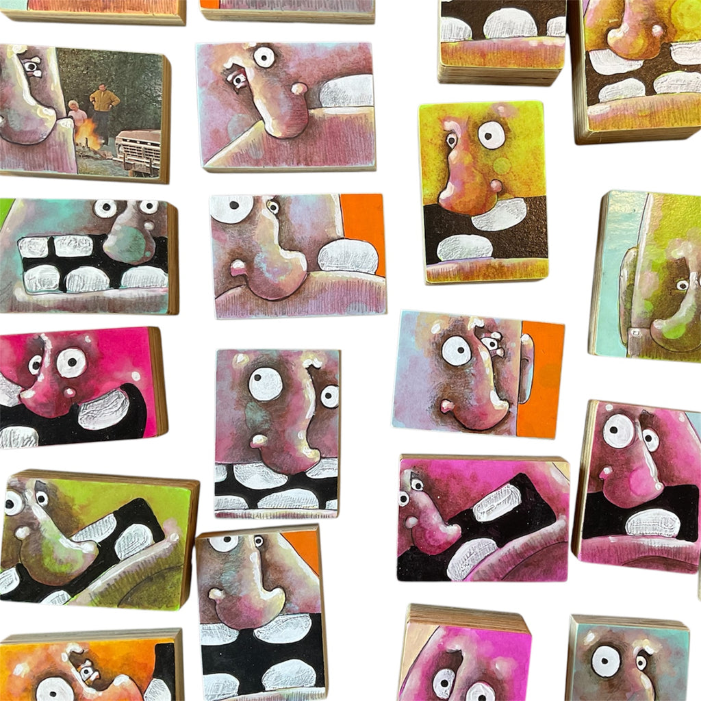 Combining both abstract and literal imagery inspires my drawings. My work is a response to spontaneous mark making, the search for and creation of sketched images, enhanced by the addition of collage. The result is funny, unique and sometimes weird characters that invite the viewer to respond with their own stories.